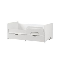 Ваш подрастающий малыш несомненно оценит изящный дизайн кроватки, а удобный съемный бортик придаст уверенность ответственным родителям в безопасности детского сна. Все элементы кровати предусмотрительно избавлены от острых углов и оформлены более толстой кромкой. Выкатные ящики - это вместительная система хранения для вещей и игрушек вашего ребенка.