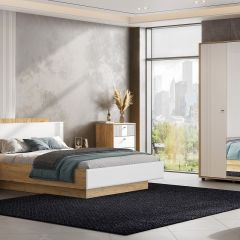 Модульная спальня «Милан» — это очень стильное решение. Она выполнена из качественных материалов — ЛДСП в цвете Дуб Золотой и Белого матового МДФ, что гарантирует долговечность и прочность. Фасады имеют качественную и красивую фрезеровку, которая придаёт спальне изысканность и элегантность.