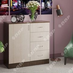 Комод оснащен 4-мя ящиками на роликовых направляющих. А так же дверка за которой расположена полка.