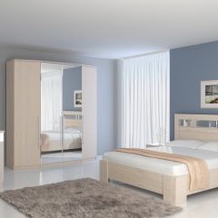 Спальня "Роксана" от мебельной фабрики "Омскмебель". Кубические формы элементов мебели, а также наличие декорирующих зеркал, придают этому гарнитуру особую изюминку и стиль. Красивые и вытянутые хромированные ручки отлично дополняют общий образ мебели.